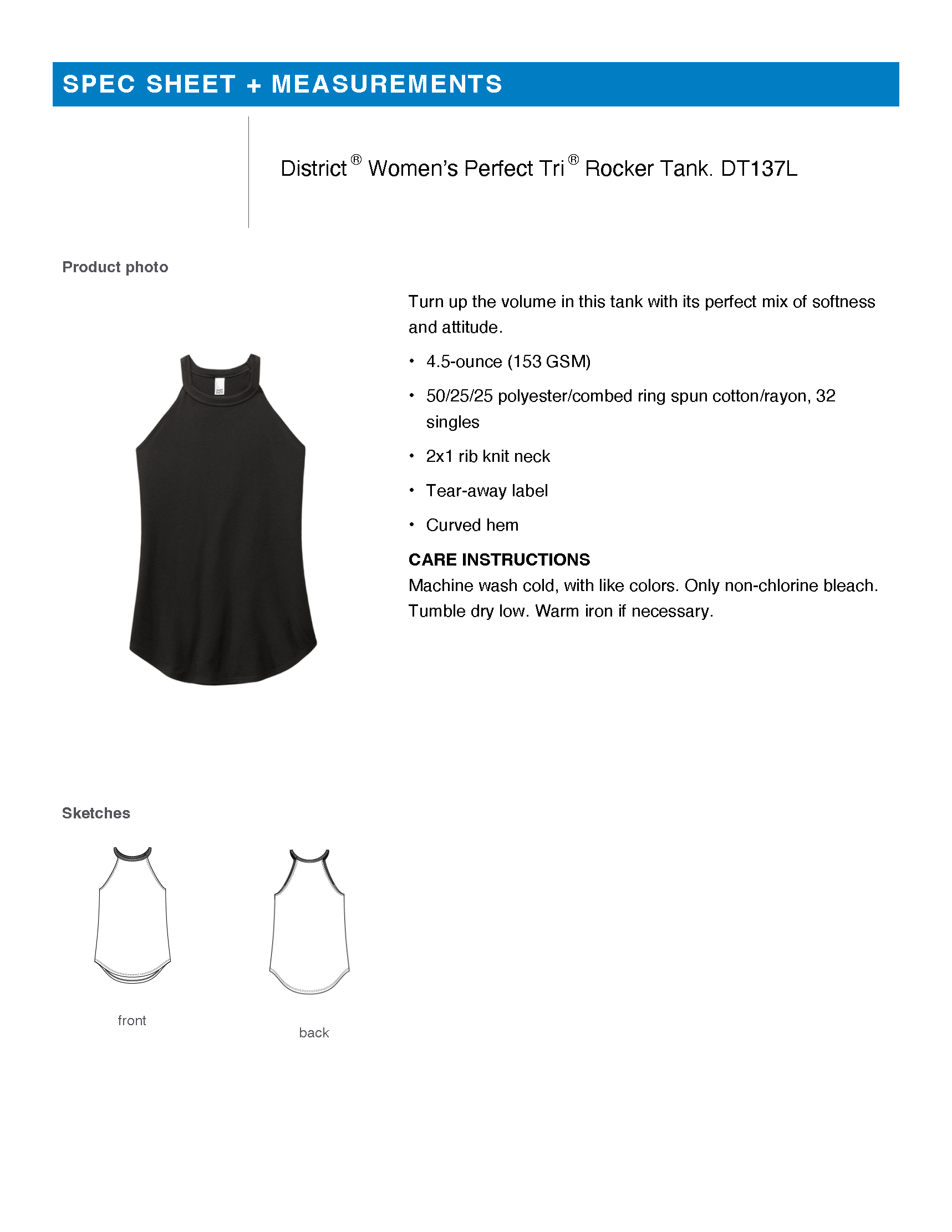 Lightweight and breathable at 4.5 ounces, this ultra-soft tri-blend tank features a flattering curved hem and a comfortable 2x1 rib knit neckline. Designed for movement and everyday wear, it delivers an easy fit with just the right edge, perfect for workouts, warm days, and layering on the go.